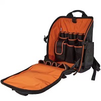 KLEIN TOOLS, Tradesman Pro Tool Station Tool Bag Backpack. Includes 18 interior pockets, 3 exterior pockets, orange interior for easy tool visibility. Elastic loop holds removable hands-free Worklight (56028 sold seperately).